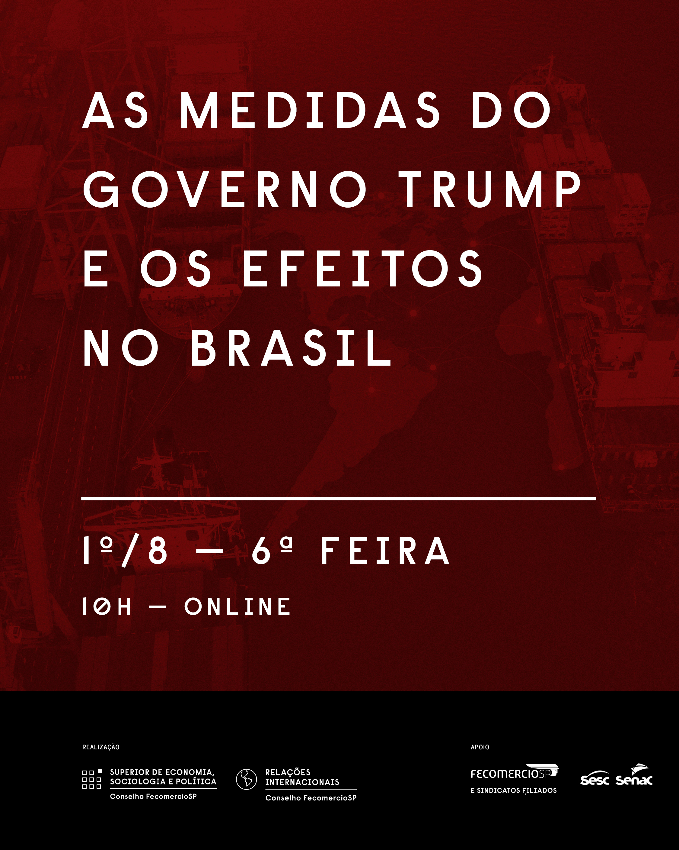 No mesmo dia, a partir das 10h, os Conselho de Relações Internacionais e o Conselho Superior de Economia, Sociologia e Política, ambos da FecomercioSP, promoverão a live As Medidas do Governo Trump e os Efeitos no Brasil.