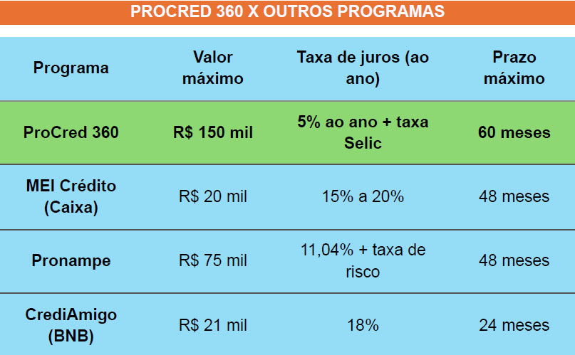 Criado para democratizar o acesso ao crédito, o ProCred 360 é uma linha de financiamento destinada ao público MEI e Microempresas (ME) com faturamento bruto anual igual ou inferior a R$ 360 mil.