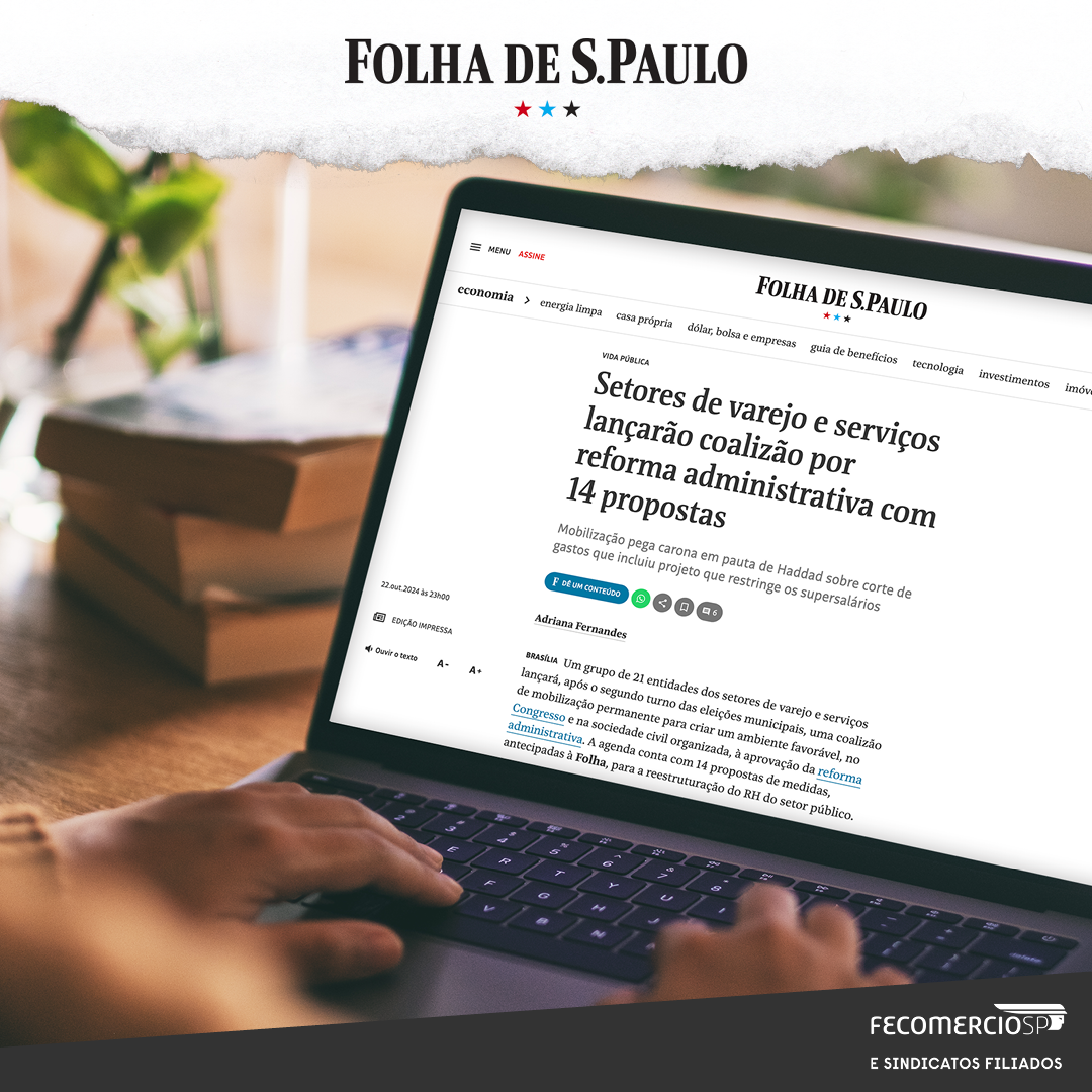 A mobilização da FecomercioSP e dos sindicatos em prol da Reforma Administrativa é um dos principais destaques da edição desta quarta-feira (23) do jornal “Folha de S.Paulo”.