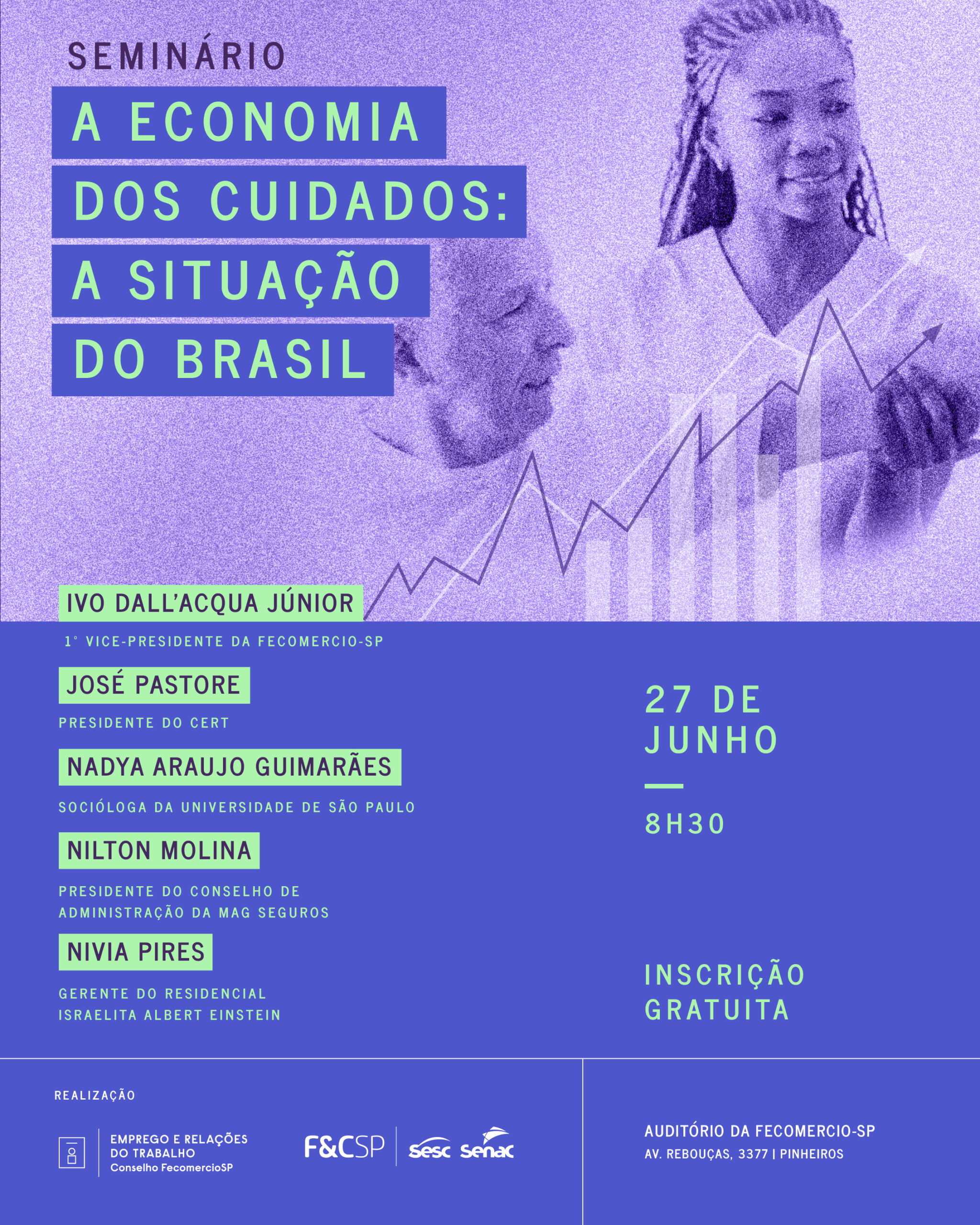 A FecomercioSP convida você para o evento “A Economia dos Cuidados: a Situação do Brasil”, no dia 27 de junho, das 8h30 às 12h30, em São Paulo.